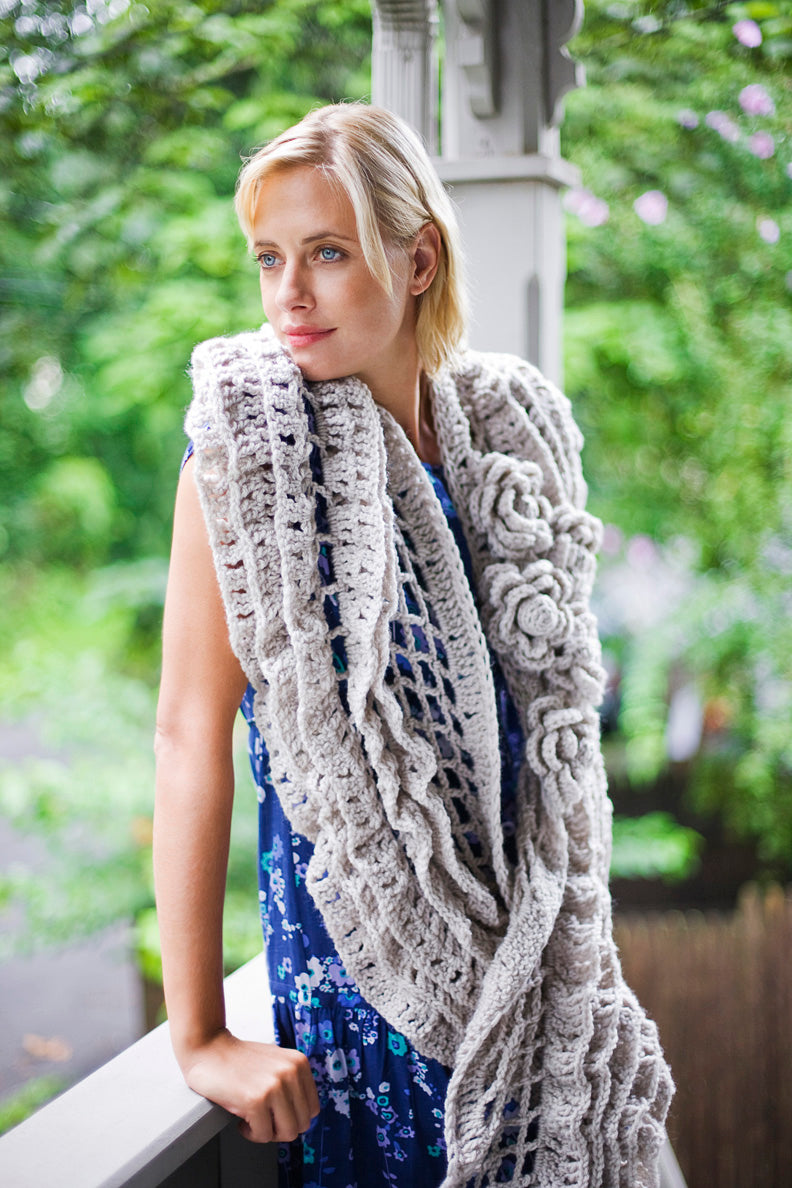 The Bella Luna Shawl is a crochet shawl pattern made with medium weight yarn that has a skill level of intermediate.