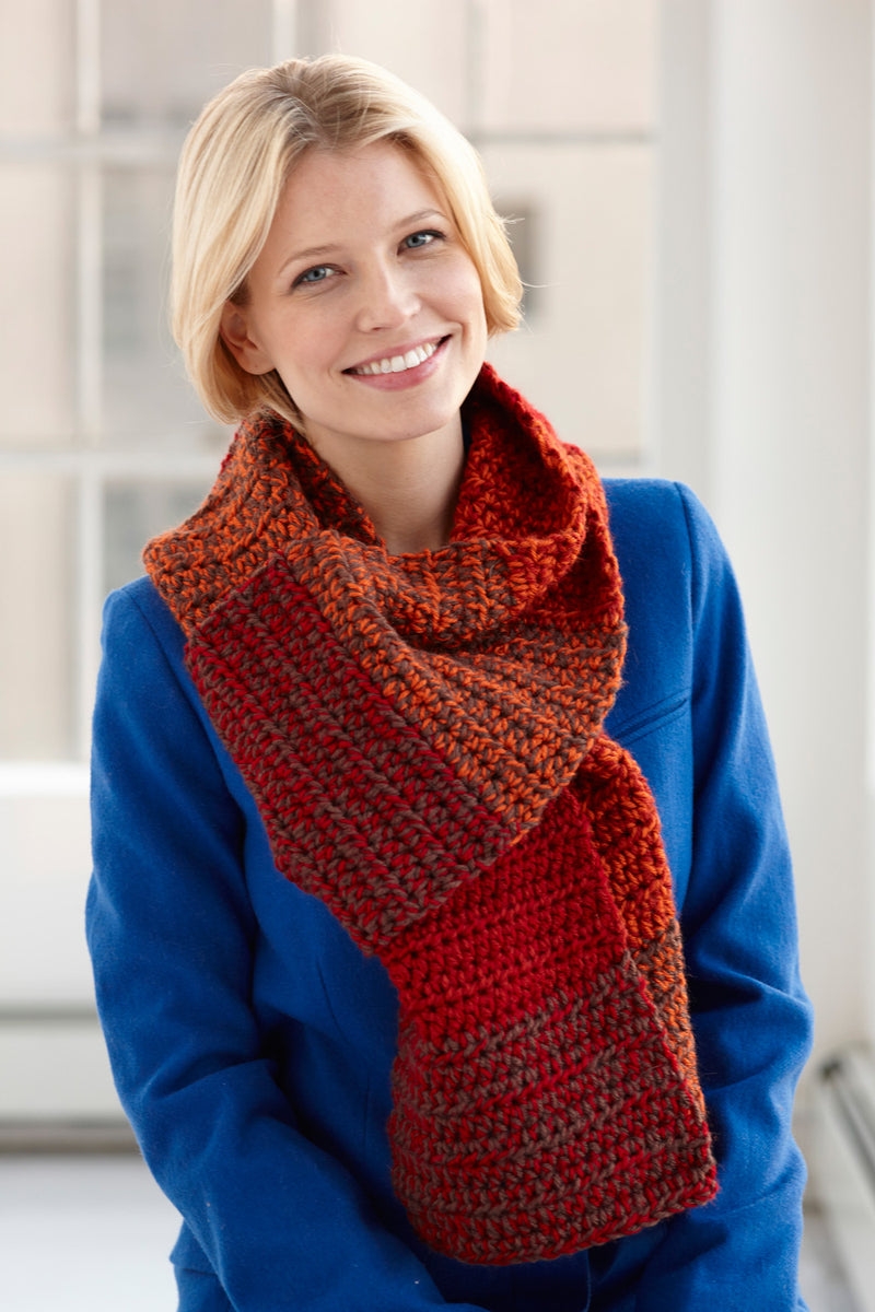 The Blended Scarf - Version 2 is a crochet scarf pattern made with medium weight yarn that has a skill level of intermediate.