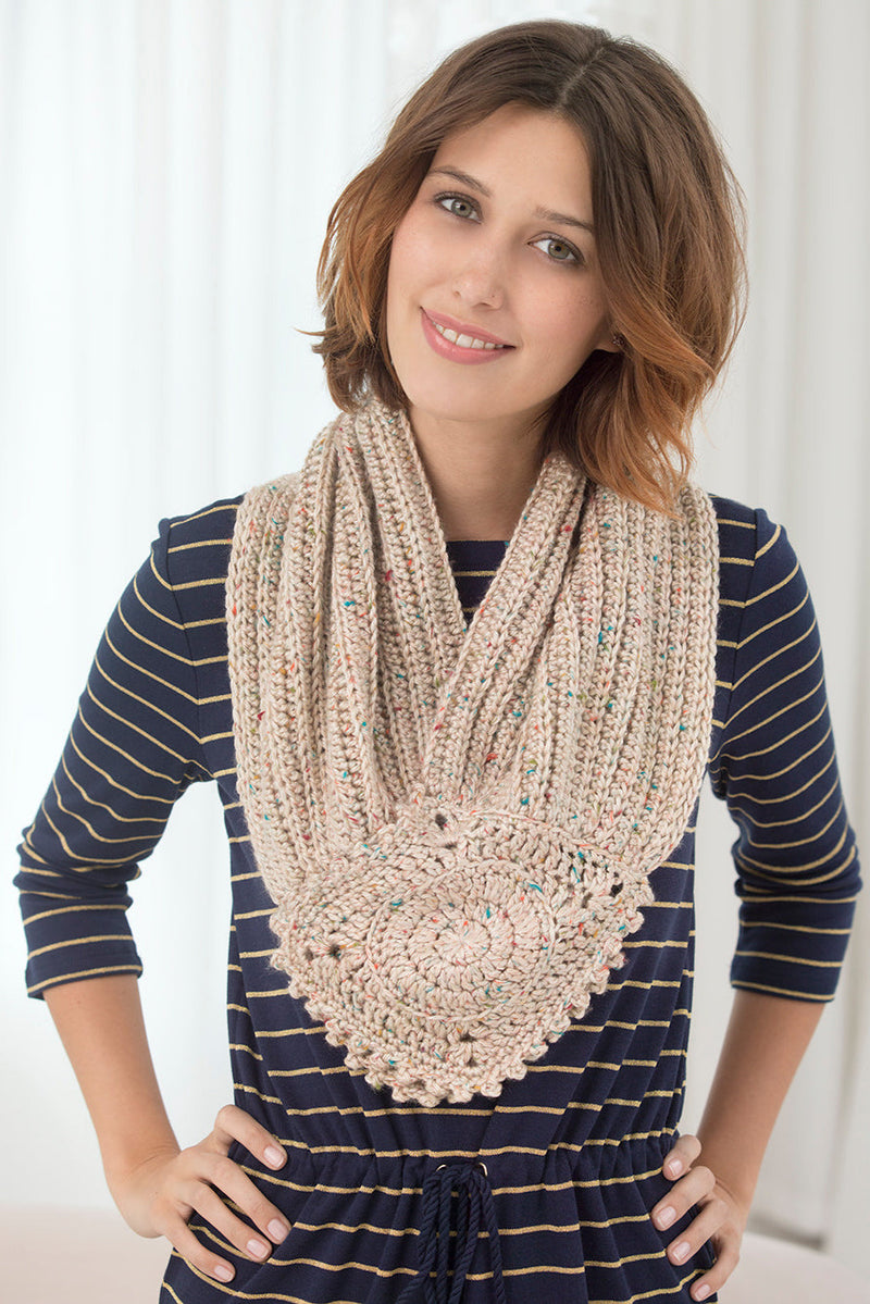 The Brompton Abbey Cowl - Version 1 is a crochet cowl pattern made with medium weight yarn that has a skill level of easy.