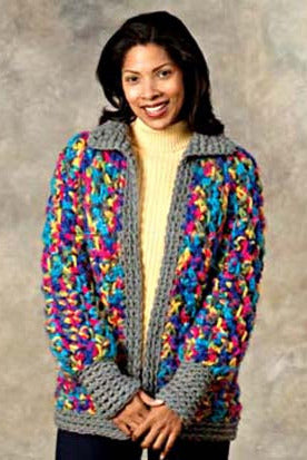 1 Cluster, ch 1 = 11¼2" (3.75 cm) and 1 row = 1" (2.5 cm) in Pattern with Jiffy Thick & Quick.