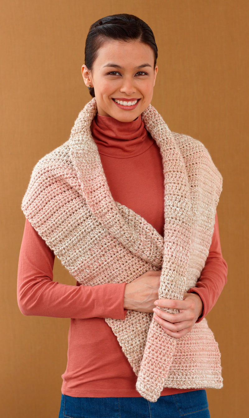 The Cinema Wrap is a crochet shawl pattern that has a skill level of beginner.