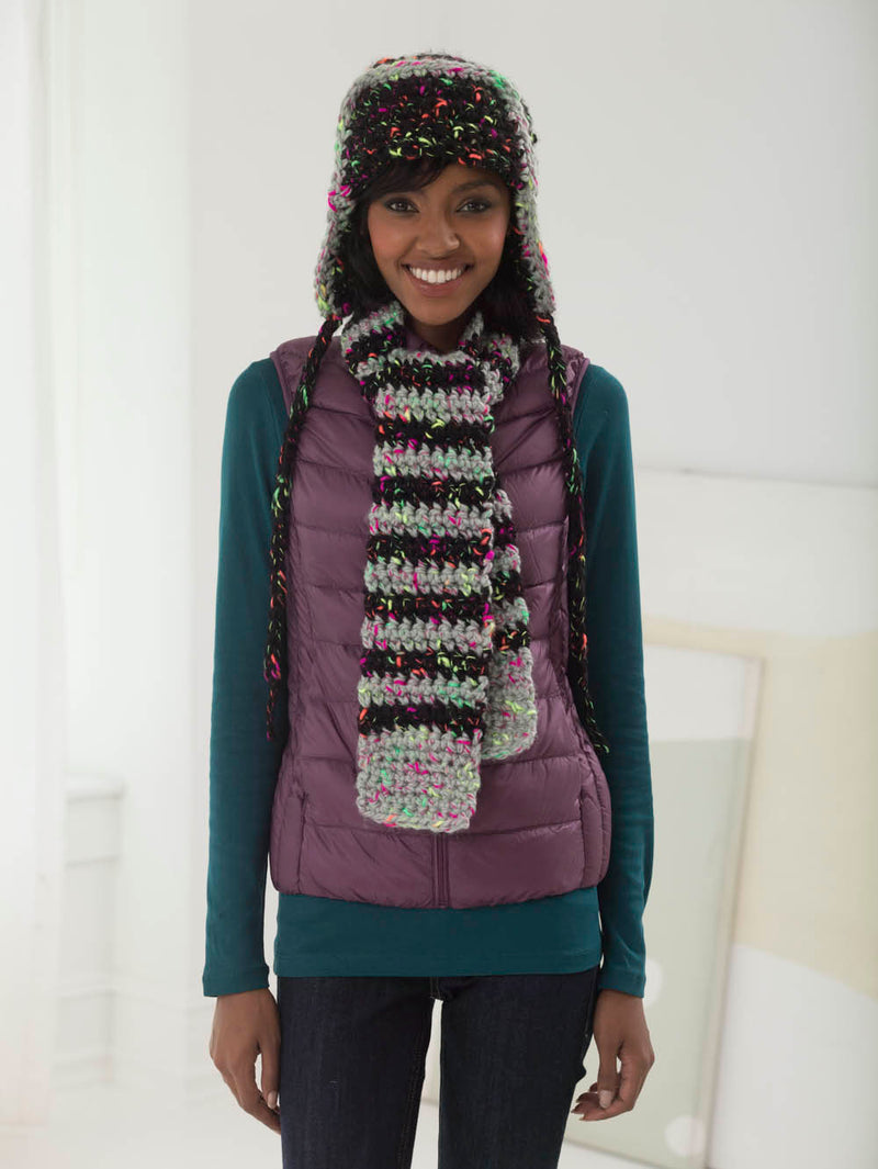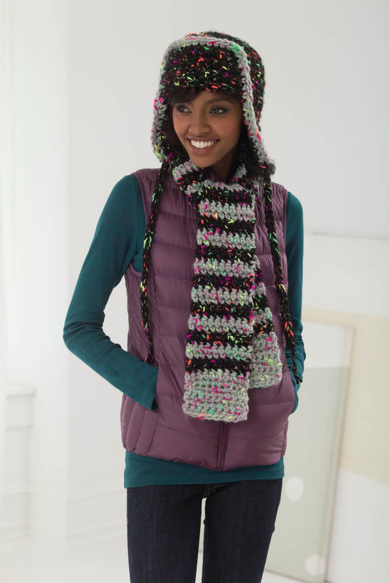 HAT Finished Circumference About 20 in. (51 cm), will stretch to fit a range of sizes. Finished Length About 7 ? in. (19 cm), not including earflaps SCARF About 4 ? x 48 in. (11.5 x 122 cm)
