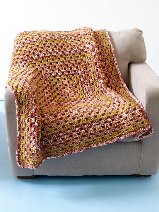 The Cotswold Granny Afghan is a crochet afghan pattern made with medium weight yarn that has a skill level of intermediate.