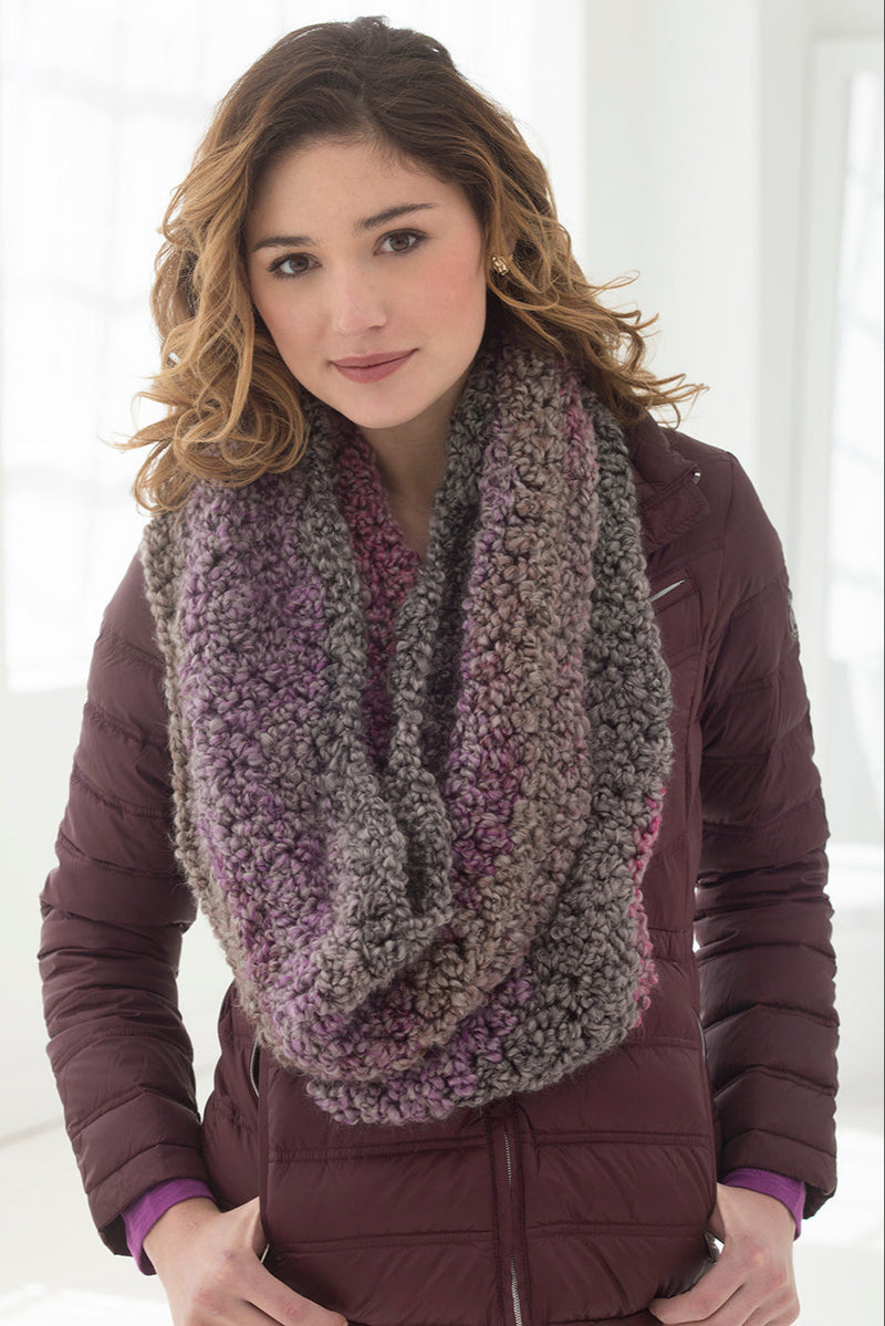 The Double Decker Cowl is a crochet cowl pattern made with super bulky weight yarn that has a skill level of easy.