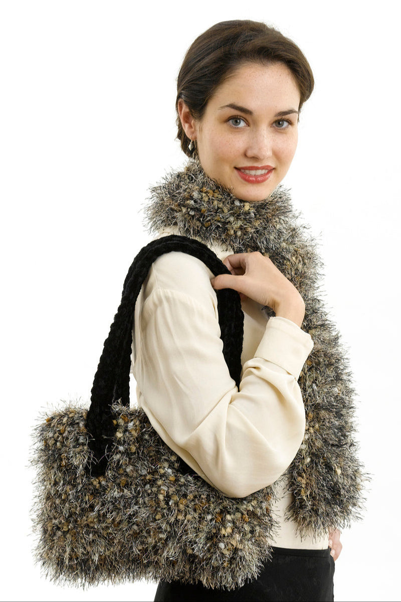 7 dc + 4 rows = 4” [10 cm] with 1 strand each of A and B held tog.