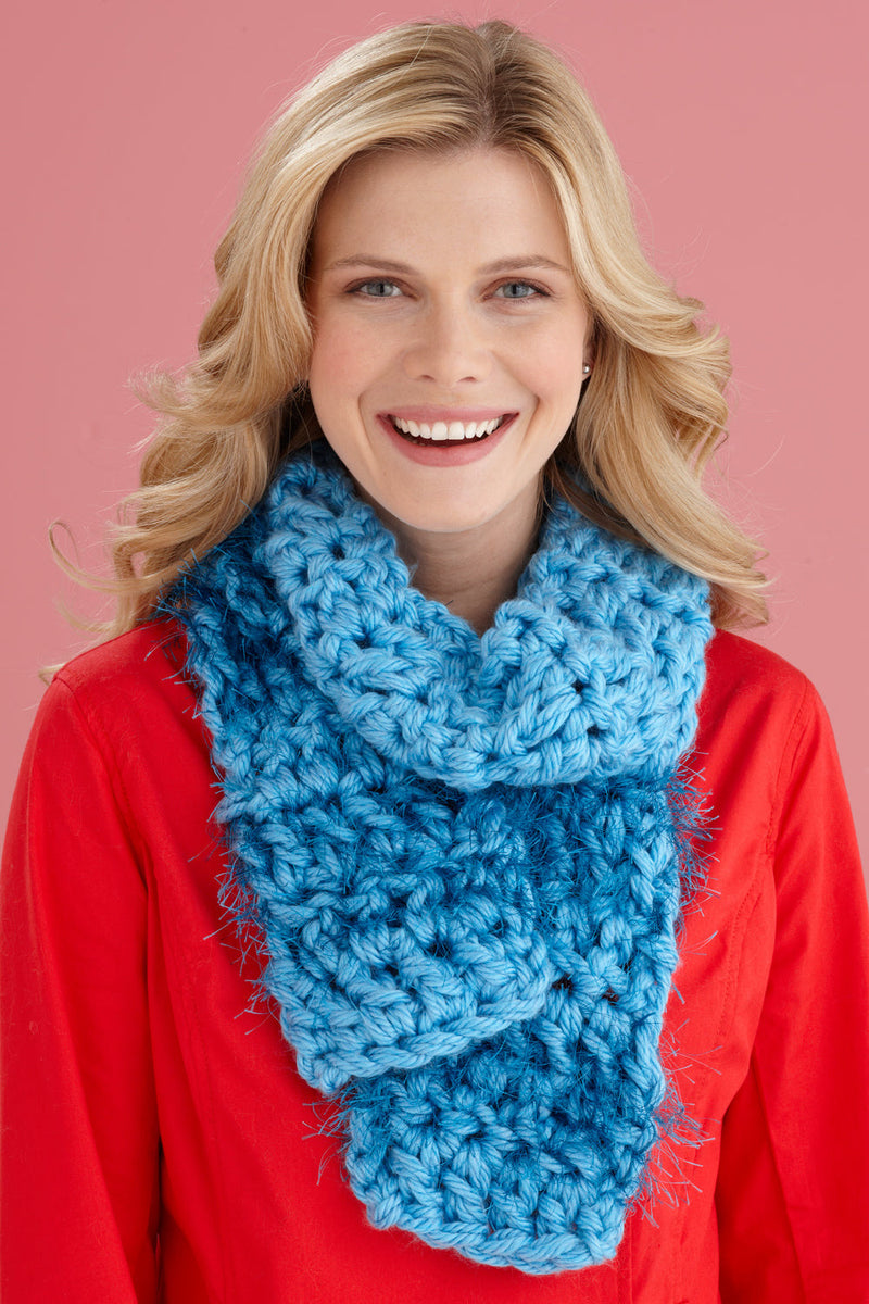 The Fast Furry Scarf is a crochet scarf pattern made with bulky weight yarn that has a skill level of beginner.