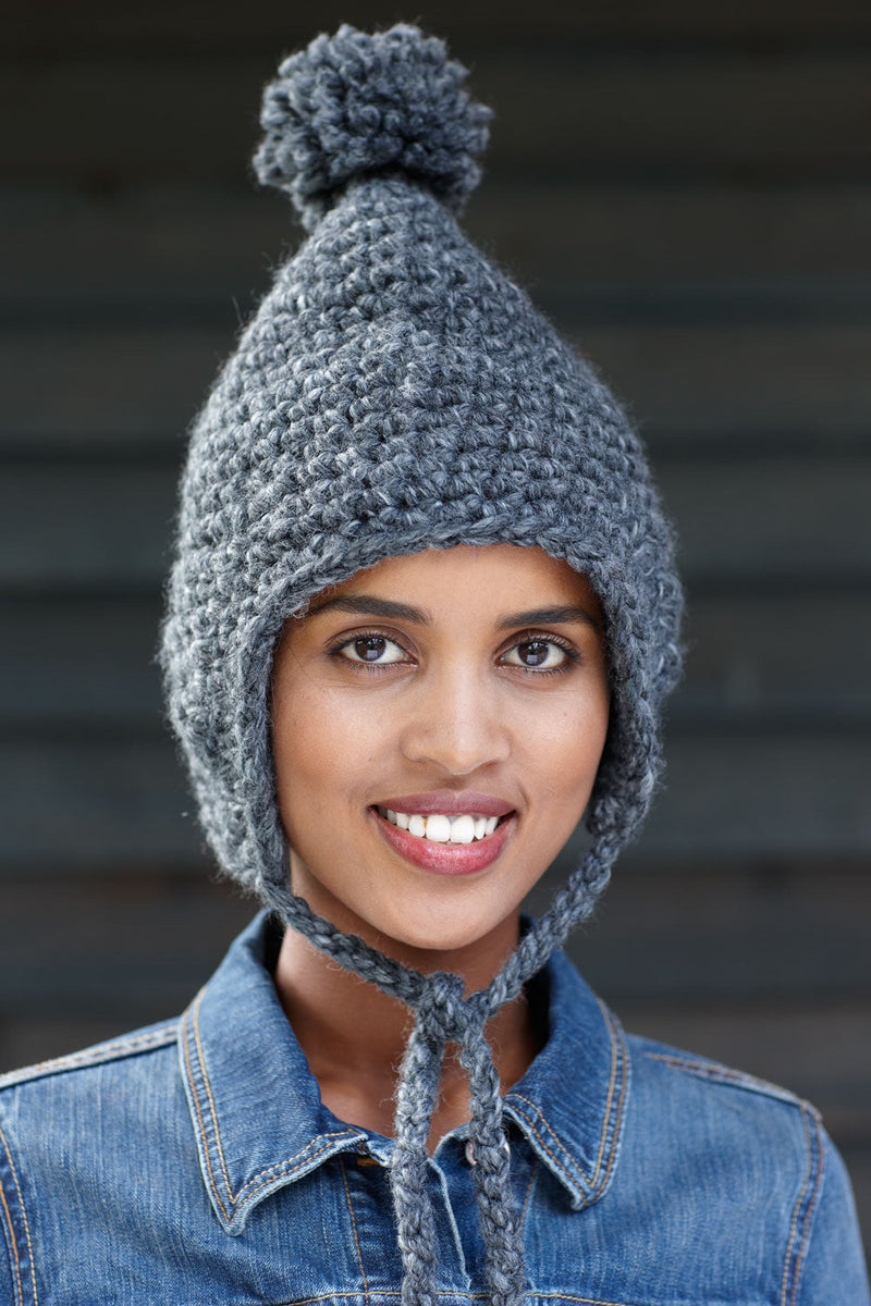 The Flagstone Earflap Hat Pattern - Version 1 is a crochet hat pattern made with super bulky weight yarn that has a skill level of beginner.