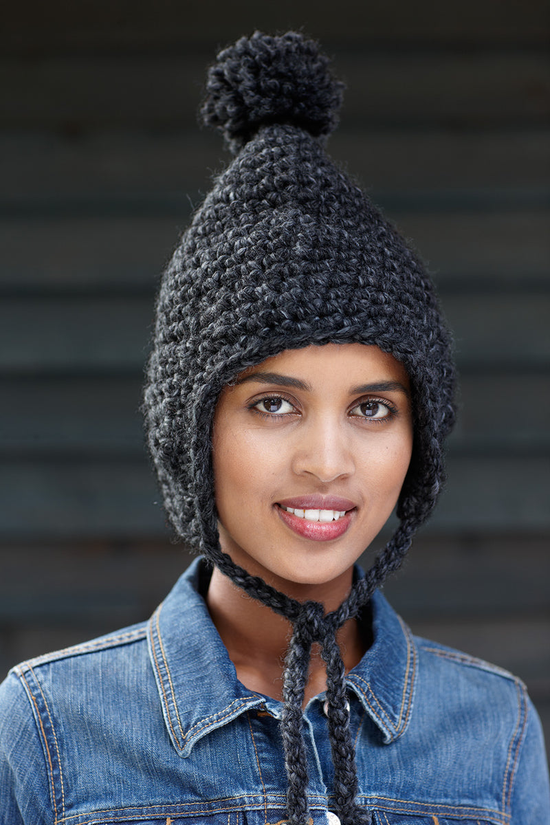 The Flagstone Earflap Hat Pattern - Version 4 is a crochet hat pattern made with super bulky weight yarn that has a skill level of beginner.