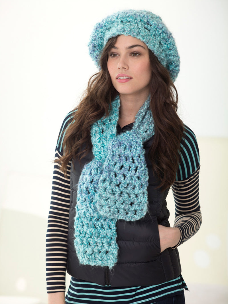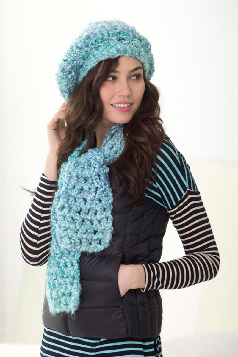 Beret Finished circumference About 20 in. (51 cm) Scarf About 6 x 54 in. (15 x 137 cm), at widest point.