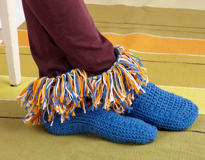 The Fringy Crochet Slippers - Version 2 is a crochet slippers pattern made with medium weight yarn that has a skill level of intermediate.