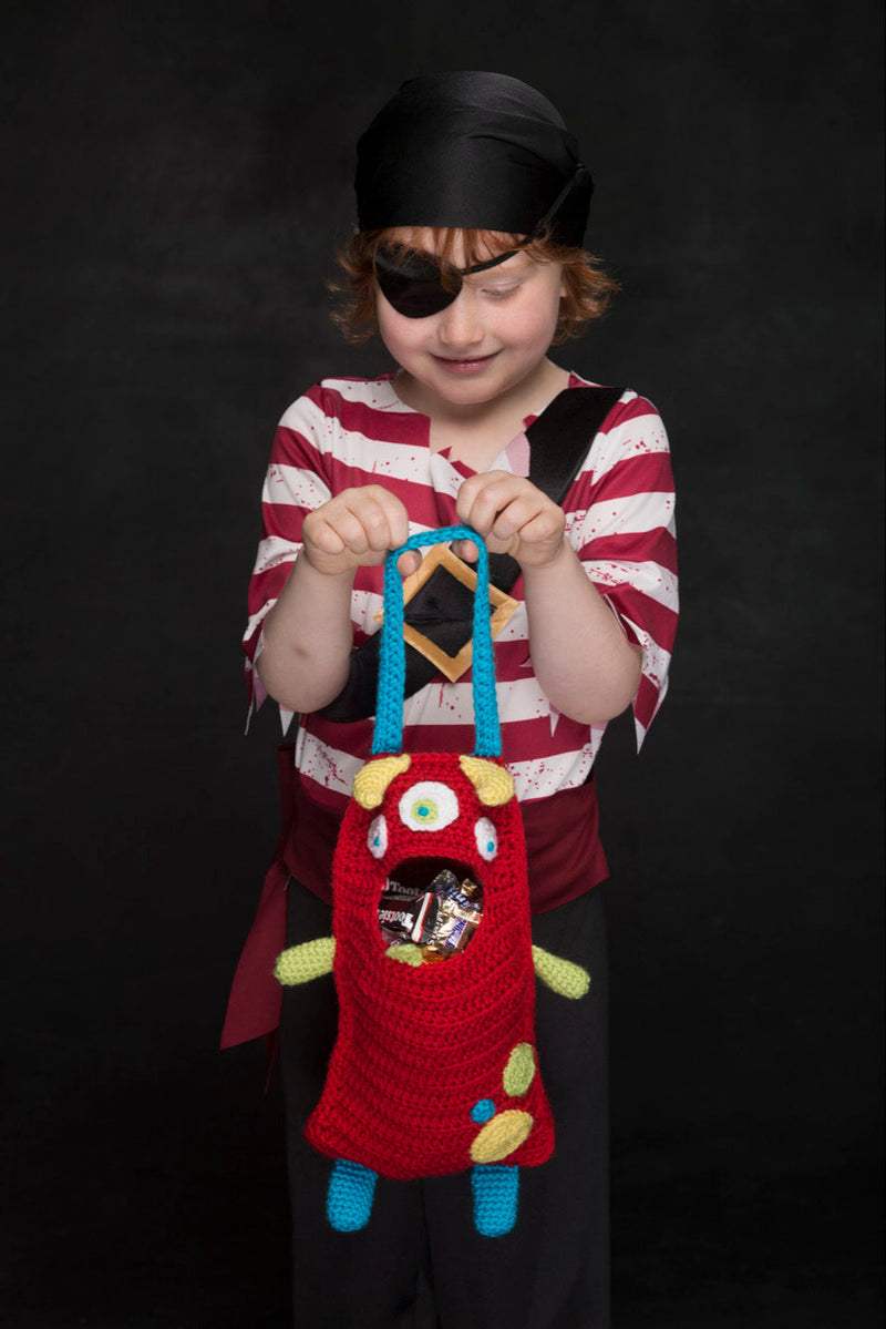 The Ghoulish Treat Bag is a crochet decoration pattern made with medium weight yarn that has a skill level of easy.