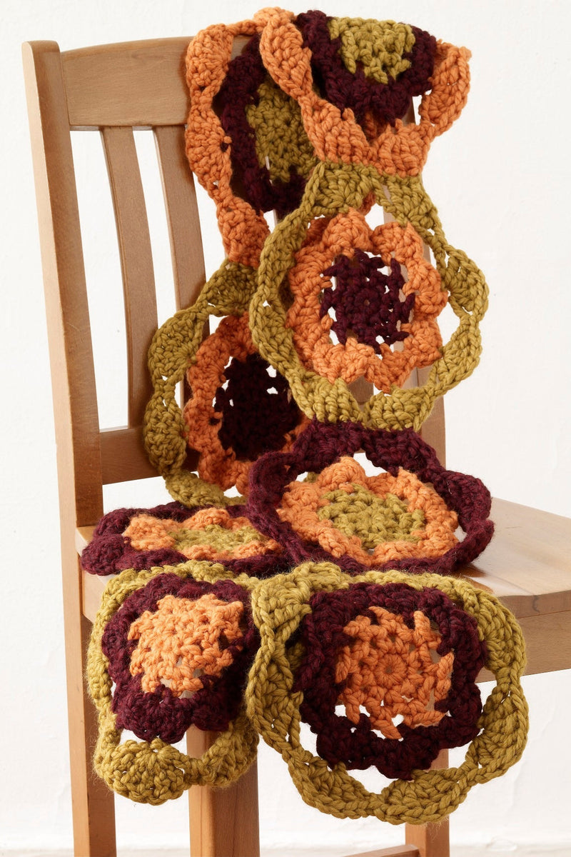 The Grace Scarf is a crochet accessory pattern made with super bulky weight yarn that has a skill level of intermediate.