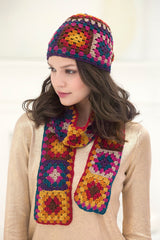 The Granny Square Scarf And Hat is a crochet hat pattern made with fine weight yarn that has a skill level of easy.