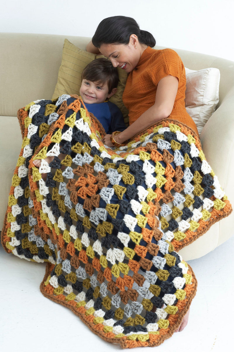 The Granny Treasure Afghan is a crochet afghan pattern made with super bulky weight yarn that has a skill level of easy.
