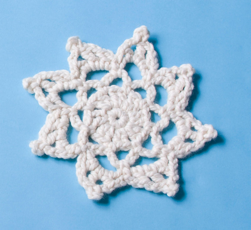 The Holiday Snowflake Pattern - Version 5 is a crochet decoration pattern made with super bulky weight yarn that has a skill level of intermediate.