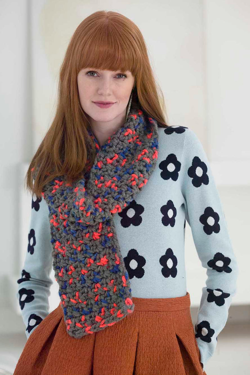 The Neon Beginner Scarf Pattern is a crochet scarf pattern that has a skill level of beginner.