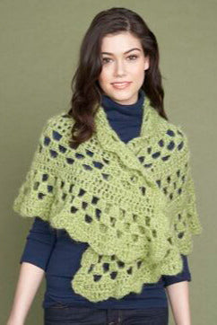 The One ball Half moon Shawl Pattern is a crochet shawl pattern made with super bulky weight yarn that has a skill level of intermediate.