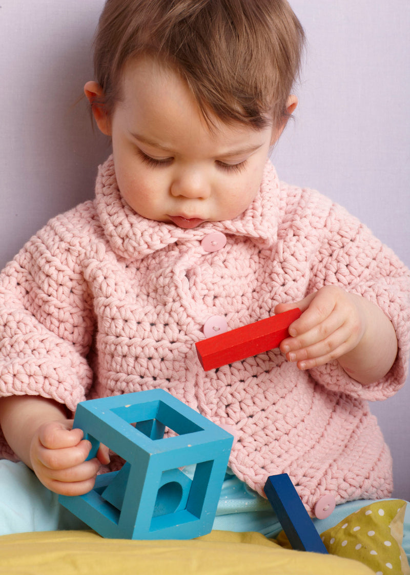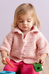 0-6 months (12-18 months, 2-3 years, 4 years) Finished Chest 20 (21, 23, 25) in. (51 (53.5, 58.5, 63.5) cm) Finished Length 9 1/2 (10, 11, 12) in. (24 (25.5, 28, 30.5) cm)