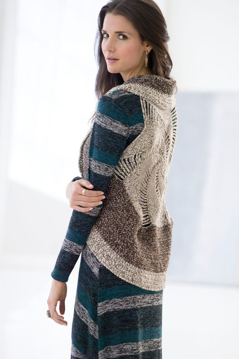 The Spiral Vest Pattern is a crochet vest pattern made with medium weight yarn that has a skill level of advanced.