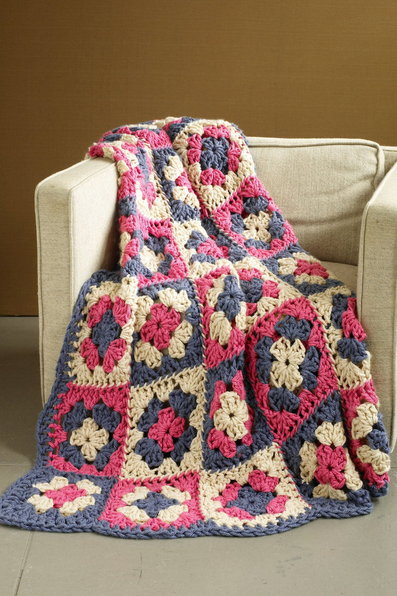 The West Coast Granny Afghan is a crochet afghan pattern made with super bulky weight yarn that has a skill level of easy.