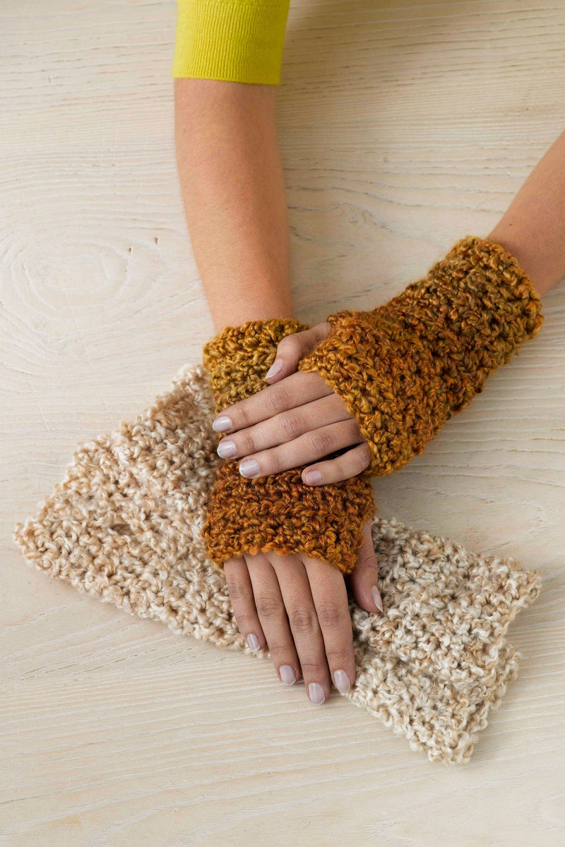 The Windy City Wristers is a crochet accessory pattern made with bulky weight yarn that has a skill level of beginner.