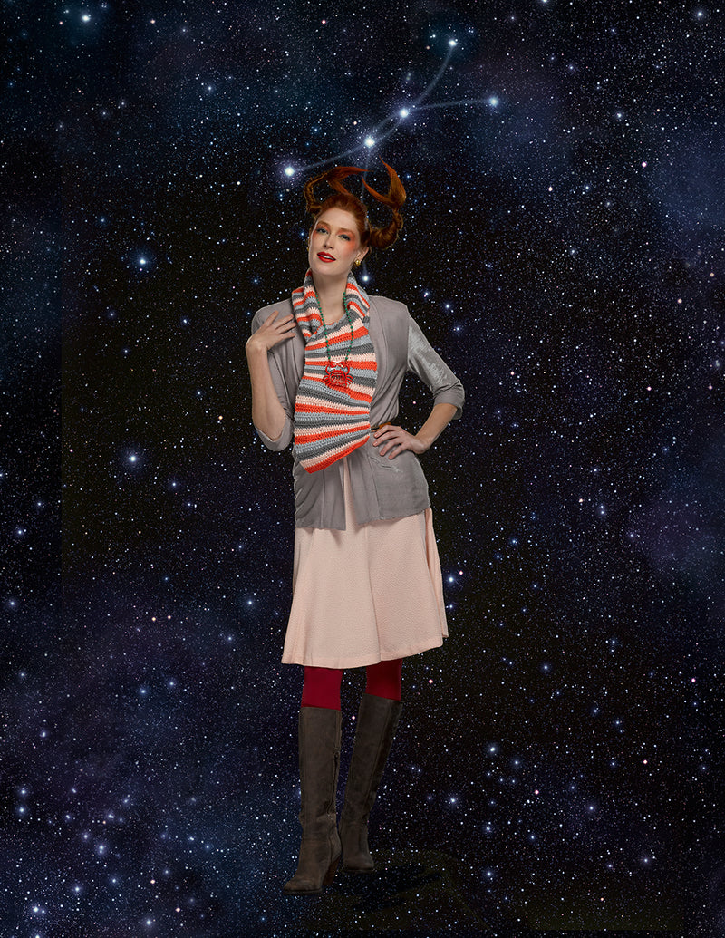 The Zodiac Scarf Cancer Pattern is a crochet scarf pattern made with medium weight yarn that has a skill level of advanced.
