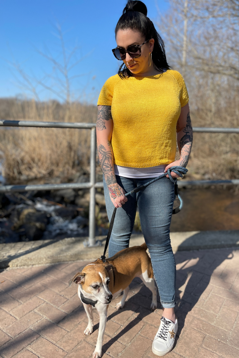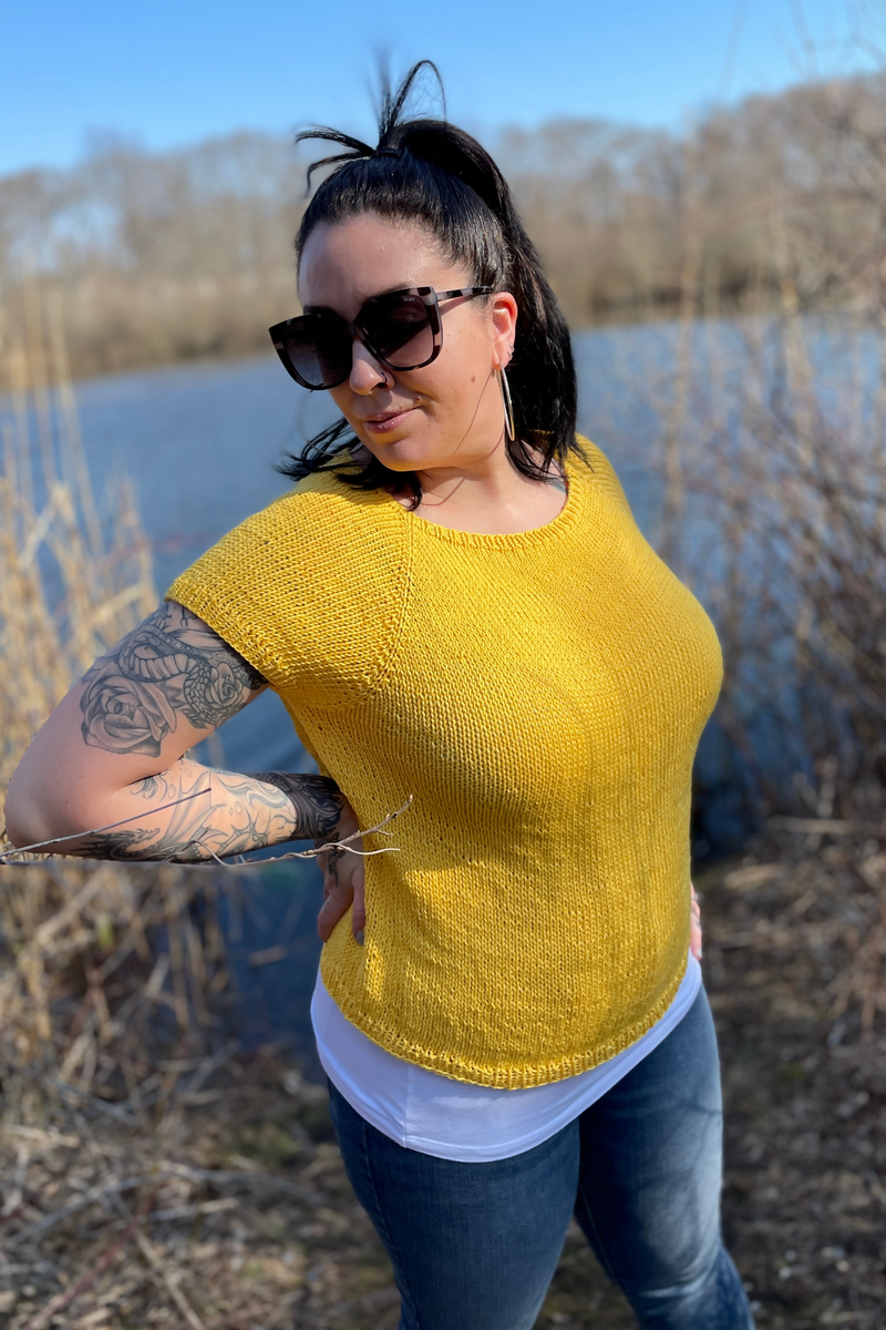 The Eastport raglan is a simple and classic all-year tee knit in Coboo yarn, a CYC3 blend of cotton and bamboo. It is is worked from the neck down, so you can try on as you go for the perfect length. Increase for the raglan sleeves, hold aside, continue, bind off, finish the sleeves with a little ribbing, and you’re done! Pair with your favorite jeans for a casual look or a flowy skirt.