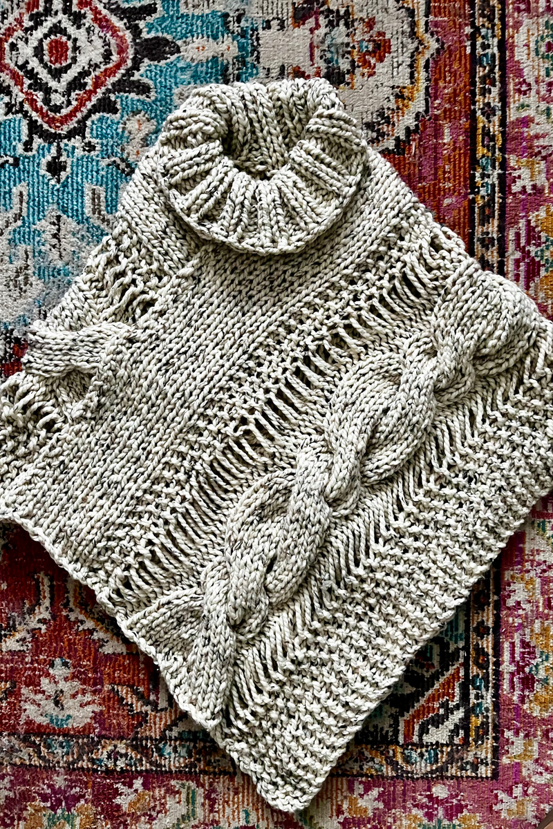 So you’re either on team poncho, or you’re on TEAM PONCHO! When are two simple rectangles not super simple? When they combine chunky cables and dropped stitches for an EPIC accessory. It’s a very easy pattern repeat for both body panels and then a few quick rib rows for the chunky turtleneck. Let's drop some stitches on purpose!