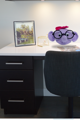 An elephant never forgets, so let this cute elephant doll keep track of your glasses for you. Keep it on your end table or nightstand so you always know where you put your glasses. Instructions include variations for girl elephant and baby elephant. Body is made on Addi King; trunk and ears are made on Addi Express. Plastic google eyes glued on.