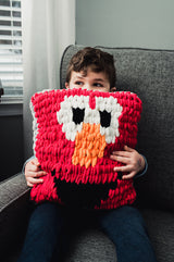 The Elmo Smile Pillow is a crafts pillow pattern made with jumbo weight yarn that has a skill level of beginner.