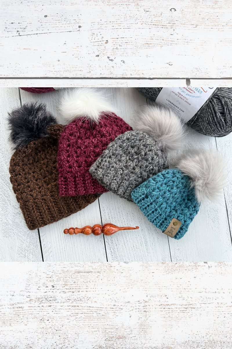 The Feather Stitch Beanie is a wonderfully textured crochet hat created with a unique stitch called the Feather Stitch. This pattern PDF includes 8 sizes from preemie through adult large and includes a link to the full video tutorial for the adult small!