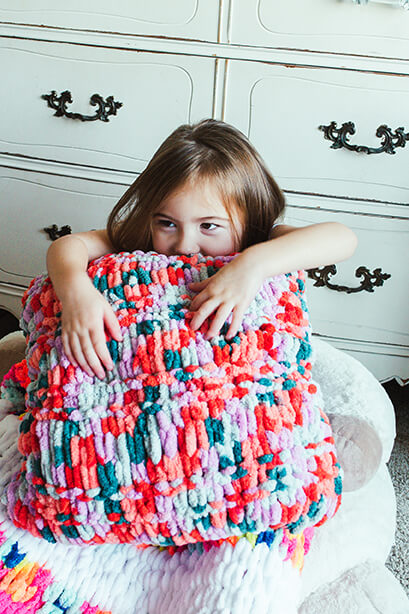 The Fluffy Pillow is a crafts pillow pattern made with jumbo weight yarn that has a skill level of beginner.