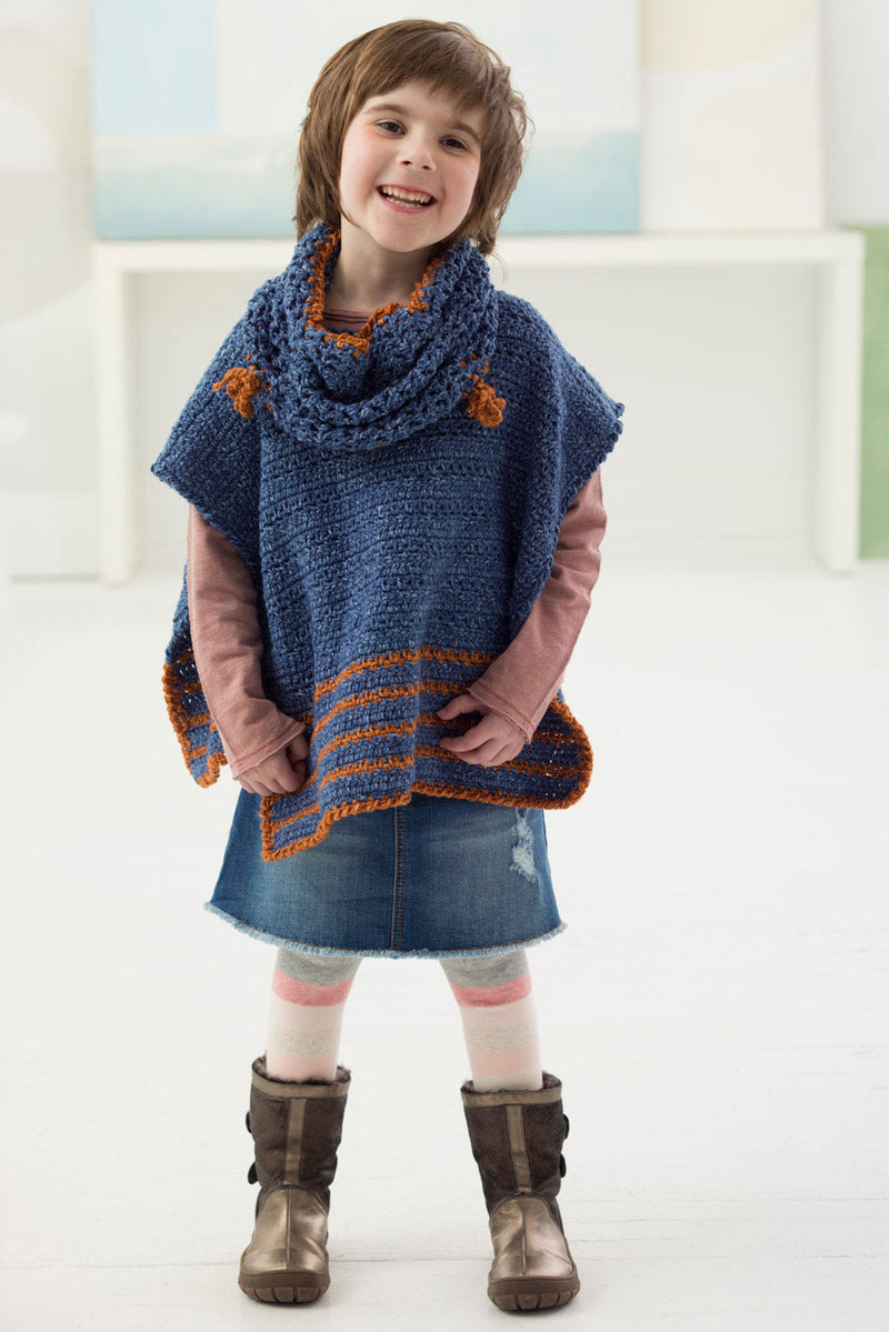 The Girl's Poncho And Cowl is a crochet cowl pattern made with medium weight yarn that has a skill level of easy.