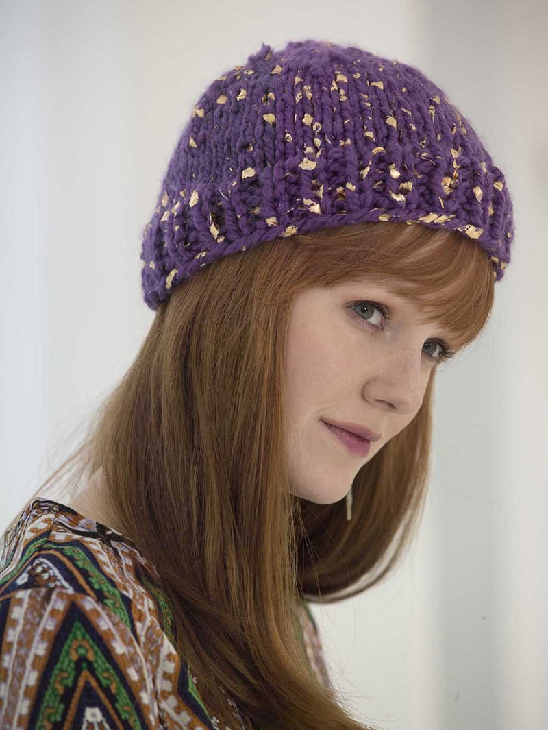 This wool blend yarn is printed with gold or silver foil and creates a unique, modern and artistic look. When you knit or crochet with this bulky yarn, your fast-finish projects will appear randomly spotted with elegant gold or silver. Perfect for hats, scarves, cowls and sweaters.