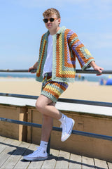 This crochet polo and shorts set is versatile enough to take you from casual outings to special events with ease. The granny square design makes it a standout choice for those who appreciate a classic look with modern flare. This set is crocheted with Made With Love The Cottony One®, a CYC #4 (Medium) yarn developed by Lion Brand in collaboration with Made With Love, created by Olympic gold medalist Tom Daley.