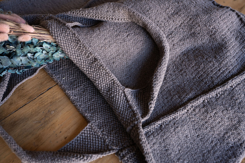 The Hoboken Tote is a knit pattern made with medium weight yarn that has a skill level of easy.