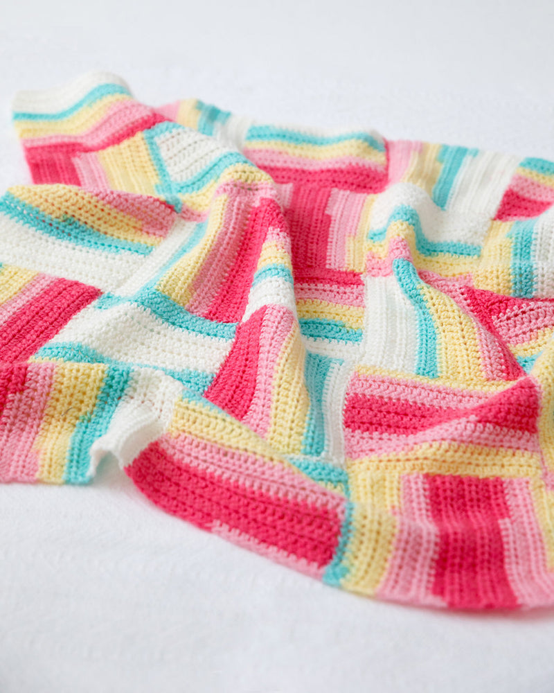 The Ice Cream Sandwich Afghan - Version 2 is a crochet afghan pattern made with light weight yarn that has a skill level of beginner.