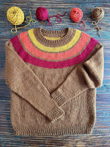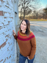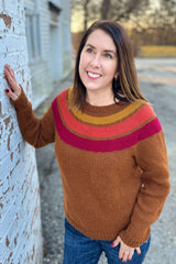 I designed 1974 to celebrate all things retro while still serving as that timeless piece in your wardrobe with a simple silhouette and classic stripes. The colors I chose for my sample brown, yellow, orange and red—give me alllll the vintage vibes and have been some of my favorites for as long as I can remember. But you might be more of a pink person or go gaga for greens. Do your thing! Let this pattern serve as a blank slate for your perfect palette. Maybe you’ll discover the color combo you pick screams 1984, 1994 or even 2004—you really can’t go wrong with whatever you decide!