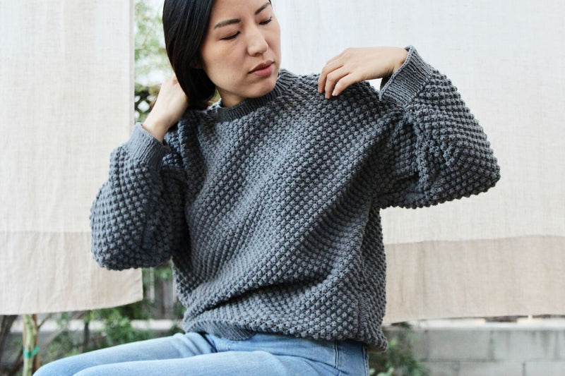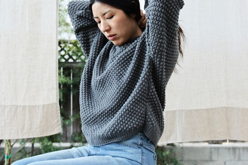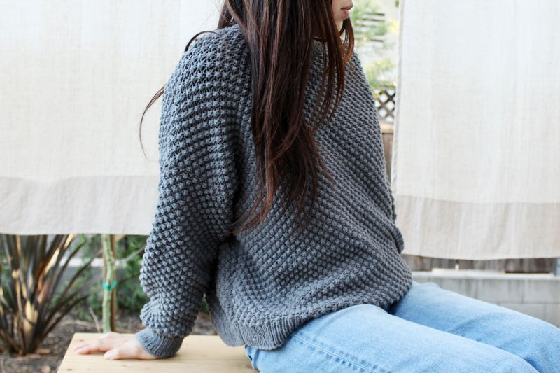 Ease into the next season with this relaxed fit dreamy pullover sweater. Effortless and roomy, the Bramble Jumper features modified drop sleeves, a classic crew neck, and a simple but striking textured stitch.