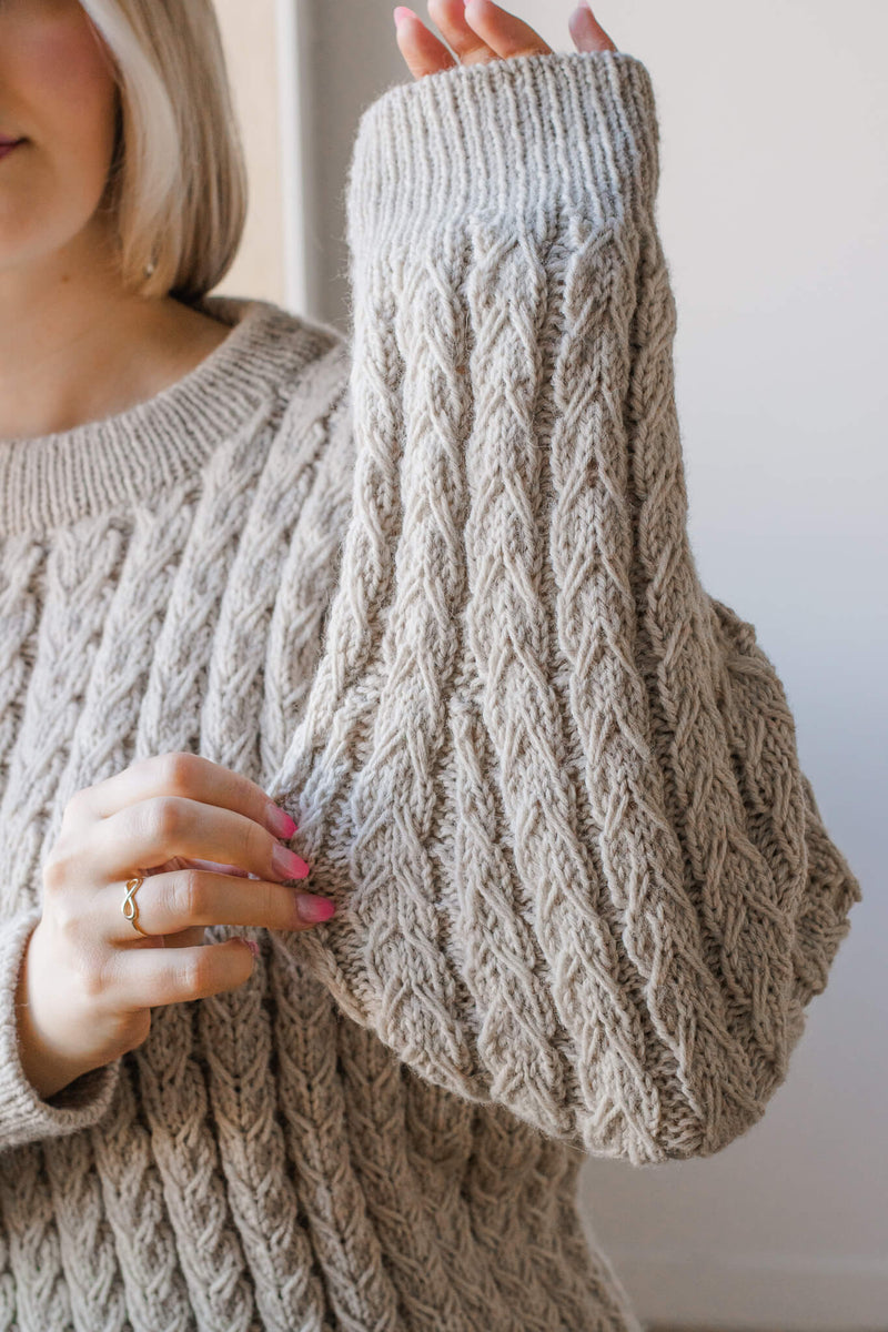 Surround yourself in squishy, slip stitch cables with the Bridgeland Pullover; inspired by the allover texture of the traditional fisherman’s sweater. The delicate cabling creates an elegant, textured fabric and can even be knit without a cable needle!