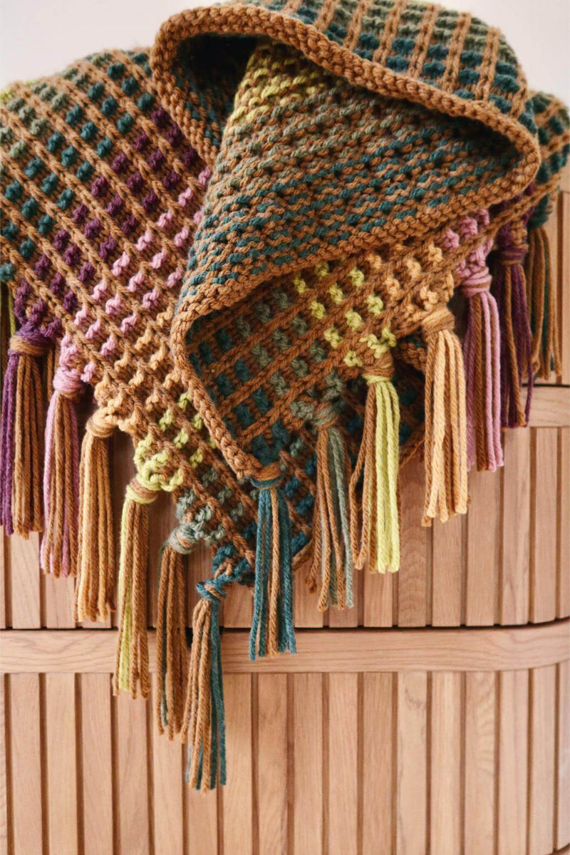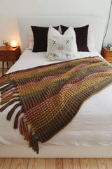 Pops of color dance across this blanket, reminiscent of candy button dots. The beautiful textures and cascading color make it a pleasure to knit and mesmerizing to display. With no ends to weave in, this is a highly satisfying colorwork project!