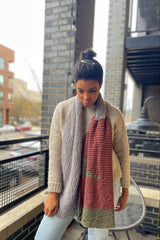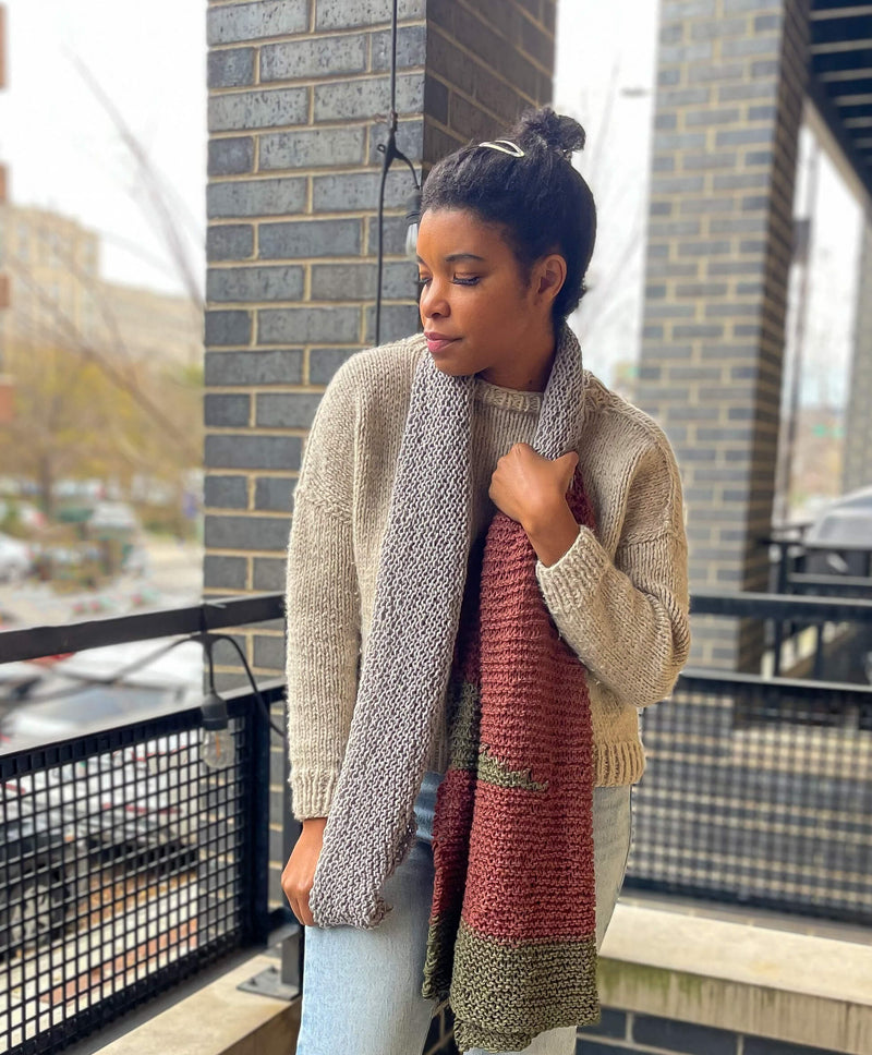 Indulging in mindful relaxed garter knitting and paced color movement, the City Flow scarf creates good vibes. Knit with Lion Brand Yarn's Color Theory, a soft acrylic worsted weight yarn, choose three of its beautiful matte tones for this hand-knit that creates chunky warmth as the temps fall.