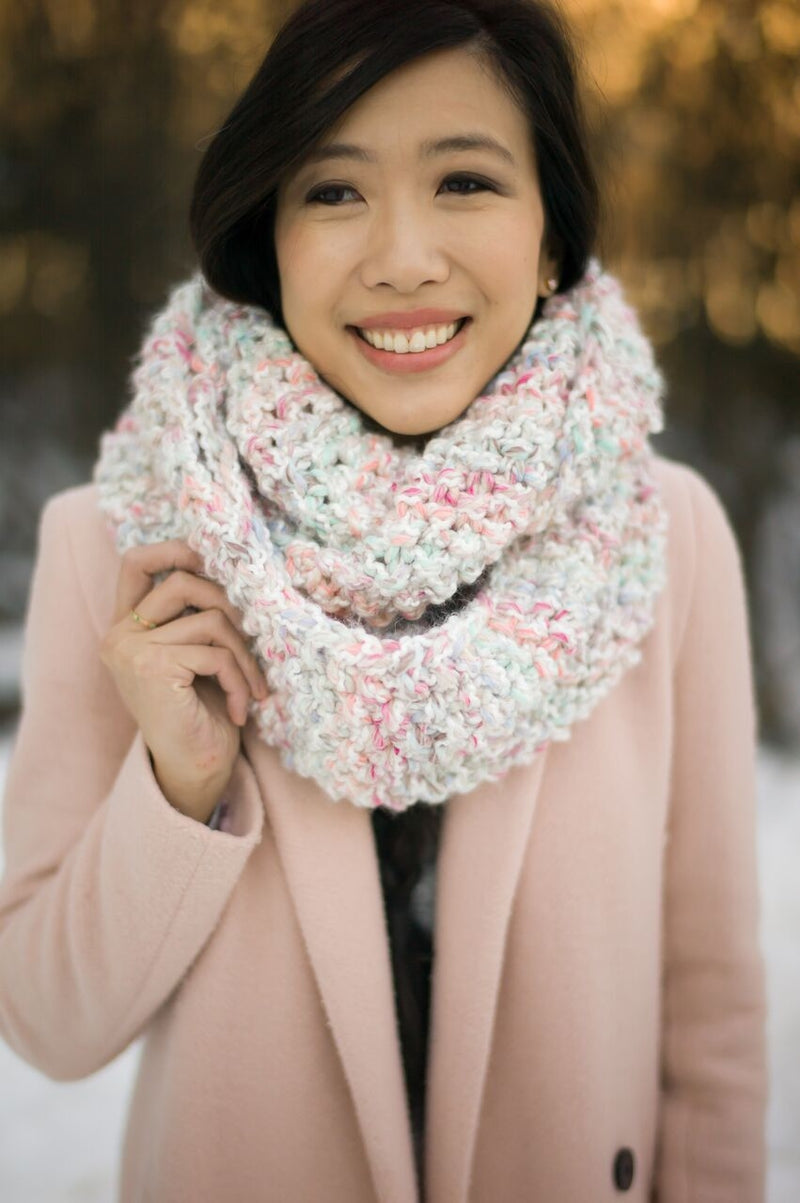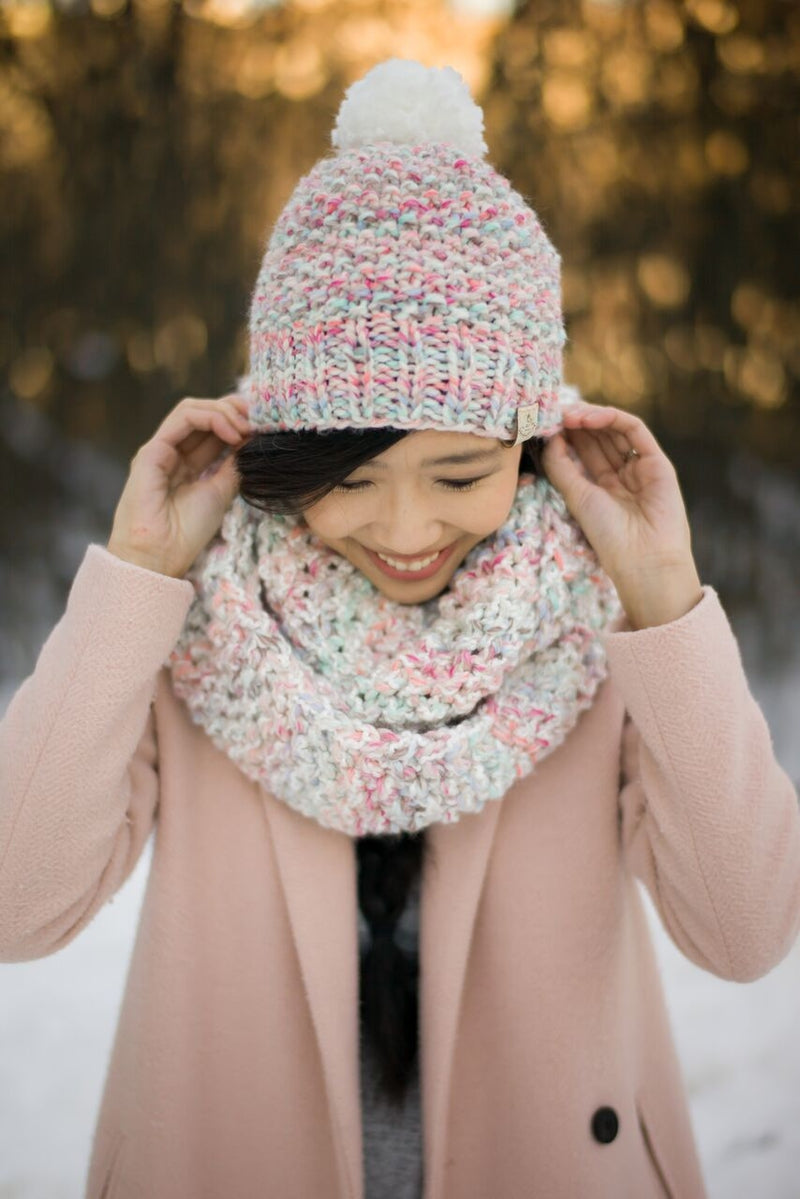 Knit this gorgeous cowl and beanie set in the most beautiful blend of colors using the whimsical colorway “Carousel” in Wool-Ease Thick & Quick! Both the cowl and beanie have beautiful texture and work up quickly using the seed stitch. The Cotton Candy Cowl & Beanie are the perfect way to stay warm and brighten up those chilly days!
