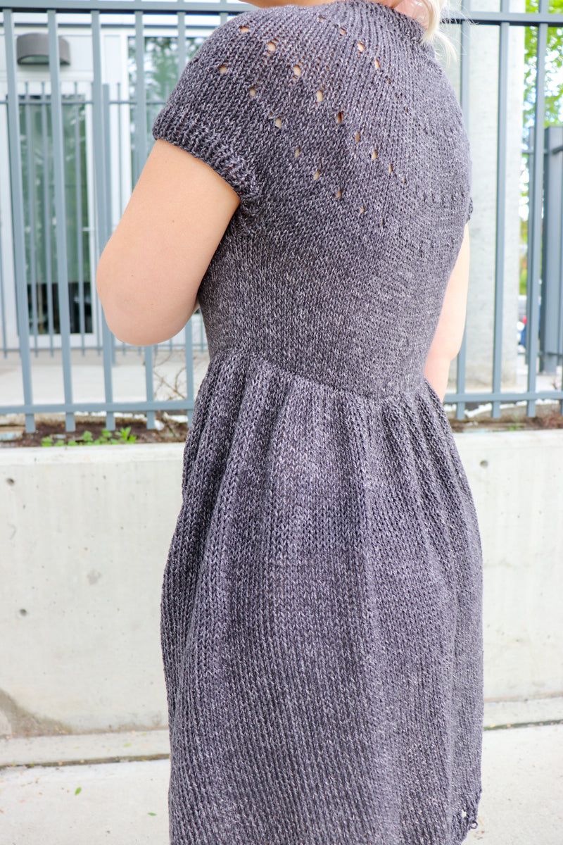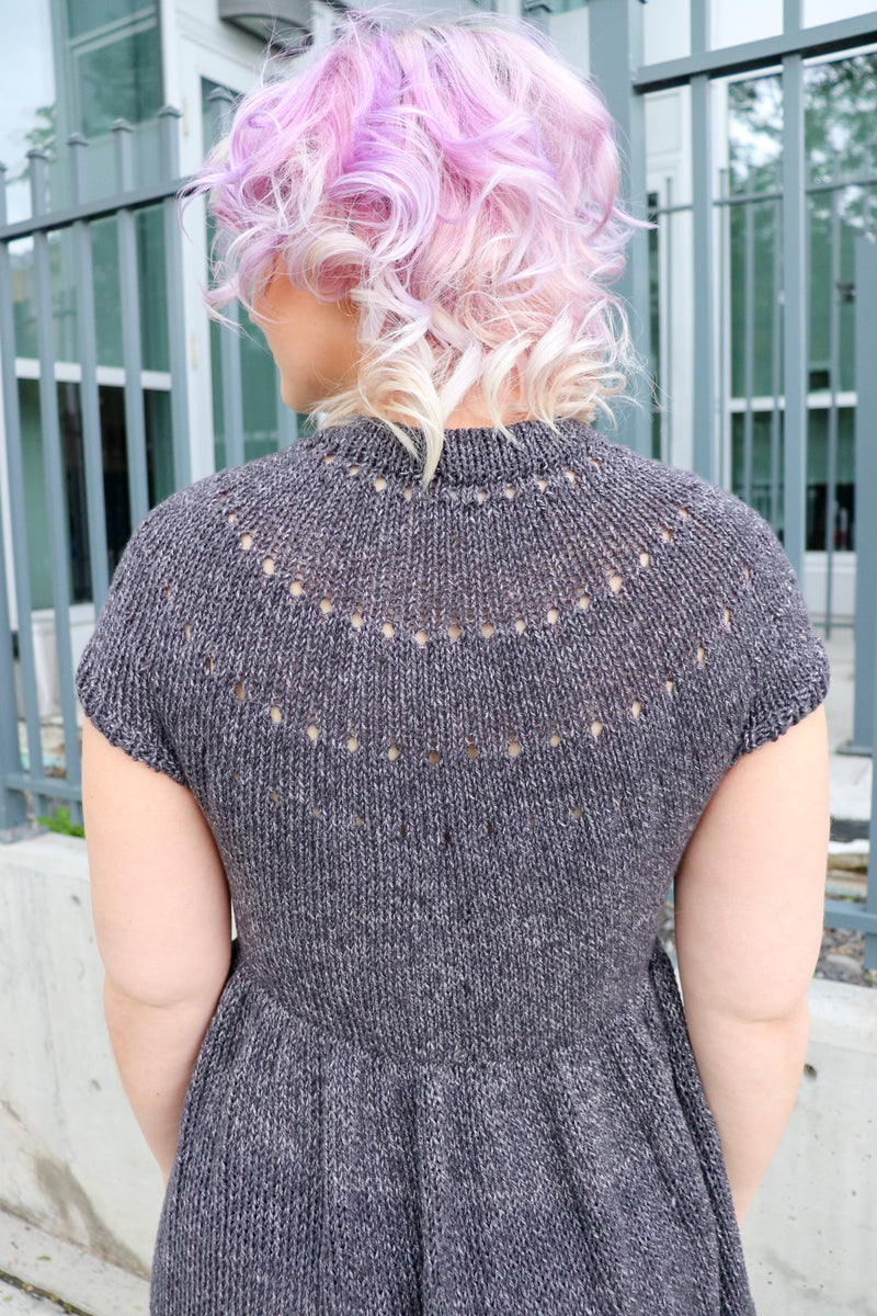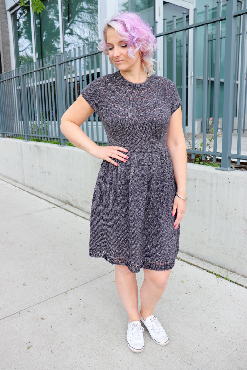 Seamless and the cutest sunburst detail of eyelet stitches, the Easy Eyelet Yoke Dress is the perfect project for a knitter wanting to dive into their first seamless top down yoke dress. Made with 1-3” of positive ease in mind, this dress was designed for everyday wear. Simple, cute with a perfect summery feel, this fit and flare dress will become a staple in your wardrobe.