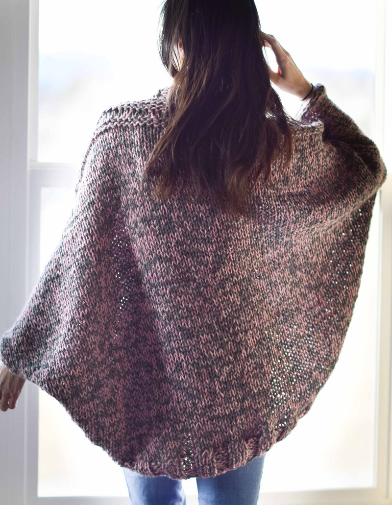 With incredible drape, a relaxed fit and trendy marled fabric, this is sure to be your new favorite cardigan! This beginner friendly pattern works up quickly on large needles and is simple and fun to make. Create a comfy, beautiful piece that you are proud to wear even as a new knitter.