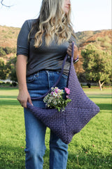 With 3 squares and a few fun folds you get this lovely tote for your next weekend's adventure. The texture is an easy repeat that keeps you happily engaged. A busy life is all about accessories that work with you so this tote has structure to carry all your necessities, all while being lightweight and comfy!