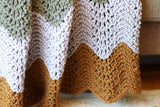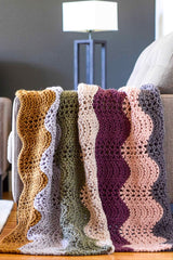 Seven rich colors, squishy, cozy texture and beautiful patterning come together to create this easy knit throw. The ultimate fall and winter blanket, it’s made for curling up by the fire! The super simple repeat makes for a fun knit and it’s beginner friendly. A quick knit, this blanket work up like a dream with chunky yarn and big needles. Perfect to drape over your couch season after season.