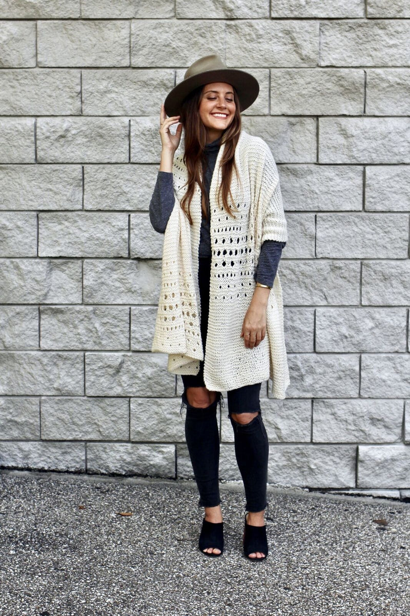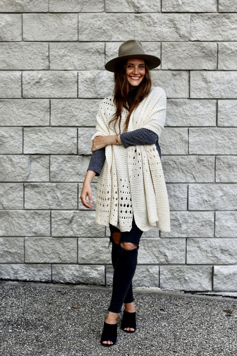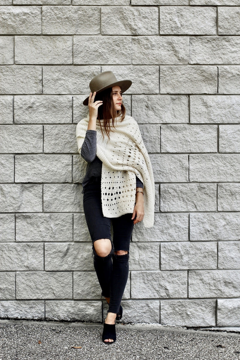 A sister pattern to my crochet Snowfall on the Bowery Wrap, the knit Flurries in the Wind Wrap is inspired by blustery snowfall under a streetlamp on a winter’s night. This blanket wrap will keep you snug and comforted at home or protected from the chill if you decide to venture out into the night, and it can be worn wrapped around the shoulders or bunched up around the neck like a scarf.