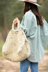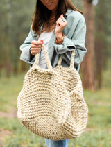 This gorgeous, big, modern knit bag can hold all the things and it’s so easy to create! Super bulky yarn makes it a quick project, and the roomy interior is so handy. It will be a show stopper when you haul it around this fall and winter! Perfect to double as a pretty yarn storage basket or carry-all in the car. It’s knit flat and there’s no shaping, so just about anyone can make it with ease. Pick your favorite color and have fun!