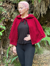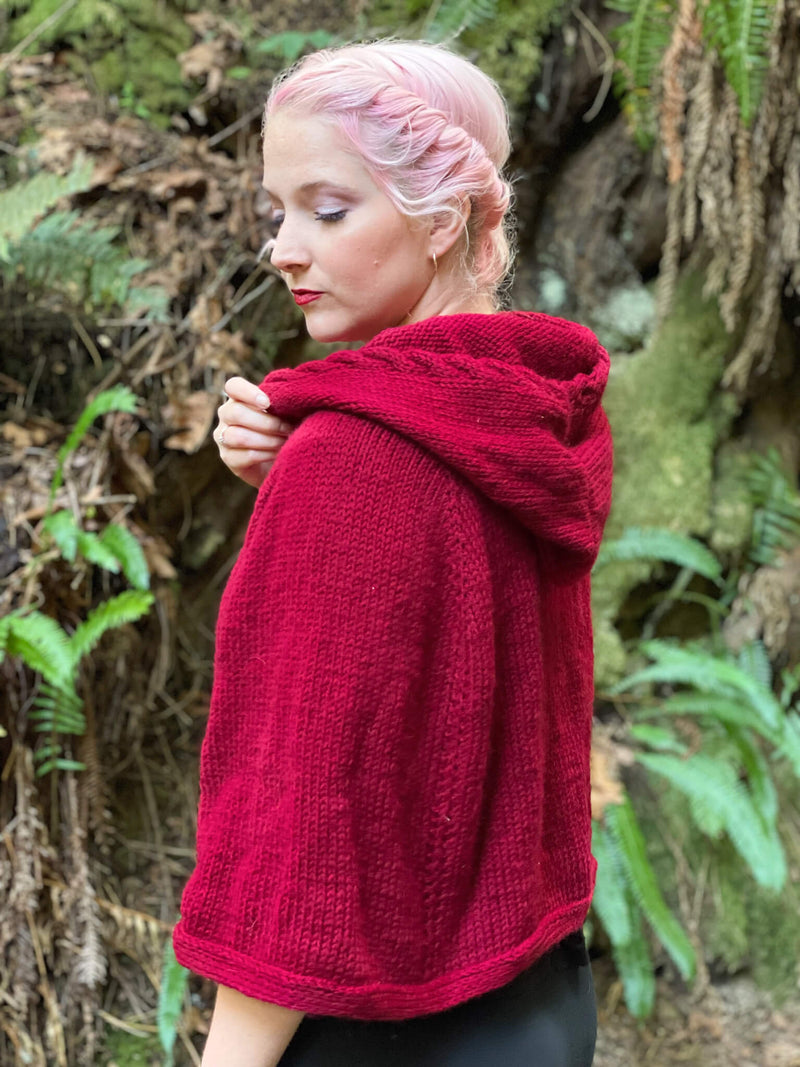 Anyone else love making their own Halloween costumes? Next up: the quintessential Little Red Riding Hood. The Into The Woods Capelet is a top-down raglan cape with a glorious hood that cinches in at the neck by a double brim. Adorned with single strand cables on both the trim and the hood, this roomy capelet is topped with an oversized hood (that's rounded - so you don't have any pointy ends) that gives it the classic fairy-tale look. Psst make it in green and it would be the perfect elven/LOTR hobbit cape too!
